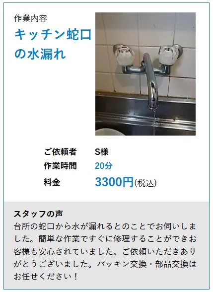 豊中市で対応可能なキッチン(台所)の修理サービスとなります。その他のトラブルはお気軽に受付スタッフまでご相談ください。